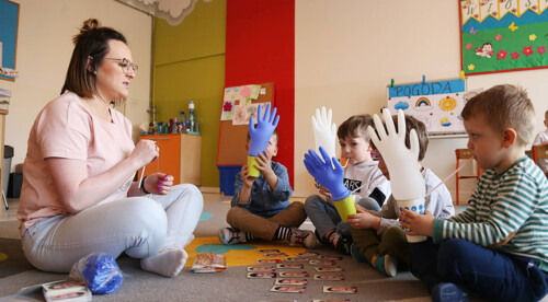 - czuwanie nad rozwojem mowy i doskonalenie jej oraz zapobieganie dysharmonii rozwojowych;